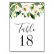 Elegant vit akvarellblommig och grönska bröllop bordsnummer