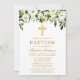 Elegant Vit Blommigt Guld Baptism i vattenfärg Inbjudningar