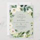 Den här elegantens vita blommigt-skräppostinbjudan är perfekt för ett klassiskt bröllop. Den moderna vintagen har en vackert romantisk elfenben- och krämvattenfärg ro och blommor med mörk grönt löv, grönt och botaniskt material. Spara papper genom att inkludera uppgifterna på baksidan av bröllopsinbjudan i stället för på ett separat djurutrymmeskort. Ta även med OSA-informationen om din gäst svarar elektroniskt (valfritt).
