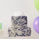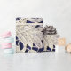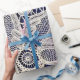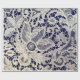 Elegant vit blomsterantikk spets på marinblå presentpapper