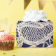 Vacker point-de-rose-spets mot marinblå färg gör ett fantastiskt inpackningspapper.