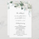 En elegant design med mjuka vita blommor, eukalyptus, grönska och andra akvarellföremål i dammiga blues och salvia grönt. Framsidan av programmet har parets namn, bröllopsdatum och detaljer om bröllopsceremonin. Baksidan av programmet visar namnen på bröllopspartiet. En vacker design perfekt för alla säsongsbröllop! Matchande bröllopsinbjudningar och tillbehör finns tillgängliga i min butik.