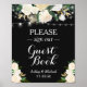Vänligen signera vår gästbok brölloppsskylt | Chic vit blomsterrankor ljussling skylt Vår gästbok poster!