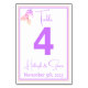 Det här är blommigtens utformning i ljusa rosor och violetta nyanser på ett vitt kort för bord som är lämpligt för bröllop eller annat party. Den ena sidan har namn med graderna och trimningen, medan den andra har bordsnumret.
