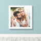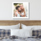 Elegant bröllopsmonogram på canvas väggkonst visar ett foto av bruden och brudgummen med vit text överlagd. Anpassad text inkluderar "Herr och Fru" i modern kalligrafi med anpassat gemensamt efternamn och bröllopsdatum i klassisk serif-typografi. Gör en vacker bröllopspresent för nygifta.
