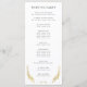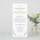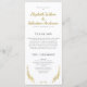 Elegant bröllop-program med en skripttext i gyllene gulter och svart modern teckensnittstext på vit bakgrund. Programmet har en blomstrande ornament i guld. Anpassa den här mallen med dina data.