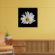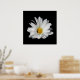 Ett foto av en elegant vit daisy med en gult mot en rent svart bakgrund.