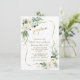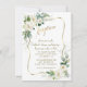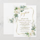 Elegant kortdesign med akvarell luftig grönska, vit, krämfärgade blommor, falskt guld ram, på en vit bakgrund. Använd verktyget Anpassa för att lägga till din information. För matchande artiklar, besök min samling Vita Elfenbensblommor.