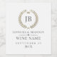 Elegant, enkel vin-etikettdesign med monogrammet. Vita faux glitter tones lagerkrans med ett anpassade monogram. Vit textmall för anpassade och bakgrund som kan ändras.