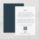 Ett elegant kort med bröllopsdetaljer med en krispig vit framsida med raffinerad marinblå skrift och serif-typografi, i kombination med en solid marinblå baksida för en tidlös och sofistikerad presentation. Detta vertikala kuvertkort innehåller en QR-kod och hänvisning till bröllopswebbplatsen, vilket gör det både praktiskt och vackert koordinerat.