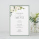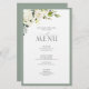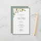 Skapa den perfekta mottagningsmiljön med denna trendiga meny i storleken 5,5"x 8,5" med en vacker bukett av vita blommor som rosor och hortensia i kombination med vacker botanisk grönska och infattad i en mjuk grågrön ram. Personalisera dina detaljer med vacker modern handskriven kalligrafi. Perfekt för, men inte begränsat till, den där trädgårds- och utomhusbröllopet. Kontakta designern för matchande produkter. Se hela kollektionen här: https://www.zazzle.com/collections/elegant_white_gray_green_watercolor_floral_wedding-119579606519645351 Copyright Anastasia Surridge för Elegant Invites, alla rättigheter förbehållna.