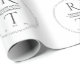 Elegant Vit Grått Monogram Bröllop Wrapping Papper Presentpapper