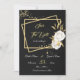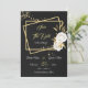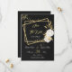 elegant romantiska vita blommor och guld löv på guld-rektanglar svart spara datuminbjudan glitter-detaljerna simuleras