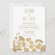 Elegant, vit guld-blomsterlyx Bröllop Inbjudningar