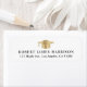 Elegant vit guld examensadress returadress etikett