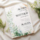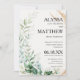 Handskrivet manusyrgrafi med elegant med vit, guld-pensel, gienery löv blommigt bröllopsinbjudningar. Den här mint grönt-bröllopsinbjudan är perfekten för alla brider- och brudutsaktiviteter i Bröllop. Anpassa den här designen med din information och ditt monogram först.