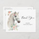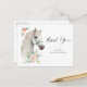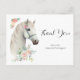 Tack-kort med en magisk illustration av ett vackert vitt hästhuvud. Omgiven av söta små rosa blommor. Boho elegant stil för hästälskare.