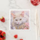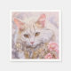 Pappra blöjor med en vacker illustration. En vit katt med långa halsar tittar regal och elegant. Omgivna av rosa blommor, guld och diamantsmycken.