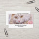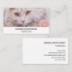 Affärskort med en vacker illustration. En vit katt med långa halsar tittar regal och elegant. Omgivna av rosa blommor, guld och diamantsmycken.