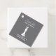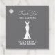 Bröllopspresentfavorit-taggar gjorda med en klassisk grå bakgrund. En grafisk illustration av en elegant vit klänning på en galge. Enkel minimalistisk design.