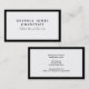 Ett affärskort för elegant med vit bakgrund, svart text och svart gräns.