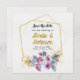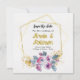 Tillkännage din bröllop med denna sofistikerade gyllene blommiga save the date. Designen inkluderar en blomsterdesign och en geometrisk ram. Denna design är ett verkligt unikt alternativ för save the date. Detta är ett klassiskt bröllop save the date-kort som är en del av en samling bröllopsinbjudningar.