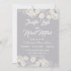 Elegant, vita blommor och silver-blommor bröllop, Denna vita grått och silver är en unik konstruktion med vita hängande blommor på ovansidan och på grund. Hans utformning kan vara personlig med din egen text. Bilden på baksidan kan tas bort om du vill.