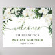 Elegant vit orkidé Boho bröllopsdusch välkomstaffisch.