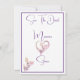 Detta är ett bröllop Spara datum-kort, visat i elegant vitt med orkidé- och rosa blommor konstverk. Det har en design med att knyta knuten. Baksidan innehåller parets förnamn och "Spara datum!"-text med kompletterande konstverk. Meddela MineByDesign för hjälp med anpassade beställningar.