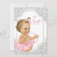 Elegant vit pärl-babyshower-inbjudan med söt liten flicka som har en rosa tutu och pärlhalsband på en vacker vit pärlsvirvelbakgrund. Denna eleganta pärl-babyshower-inbjudan kan enkelt anpassas för din fest genom att bara lägga till dina uppgifter i den typsnittsstil du väljer. Du kan också ändra bakgrundsfärgen på denna söta pärl-babyshower-inbjudan. Detta är en tryckt design med inga riktiga pärlor etc.