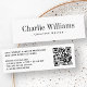 Elegant mini-affärskort med ditt namn och din kontaktinformation tillsammans med en QR-kod..