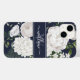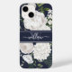 Blå och vit Blommigt Calligraphy Script Monogrammed Phone Case. Unika och trendig vattenfärgblommor och grönt på en marin blå bakgrund, med en anpassningsbar monogrammall och elegant calligraphy script namn-mall. Denna blommigt av den söt vintagen som inspirerats av mobilt skydd skulle ge en tankeväckande gåva till mamma, dotter, mormor osv.