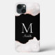 Elegant vit ros guld agate monogram iPhone 13 fodral.