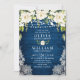 Elegant Vit ros Snöre Rustic Blue Wood Bröllop Inbjudningar
