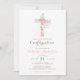 Elegant vit bekräftelseinbjudan med en rosa blommigt kor.Anpassa med text. Se till att kontrollera alla andra objekt i den här söt bekräftelsesamlingen för henne.