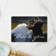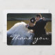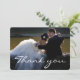 Elegant vit scriptfont bröllopsfoto tackkort. Anpassa det med ditt favoritbröllopskort. Det innehåller ett tackmeddelande på baksidan av kortet som du kan ändra efter behag.