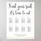 Elegant, vit sittplatslinje i Bröllop Hitta ditt säte Det är dags att äta med guld-folieeffekt (faux, tryckt som en bild) och utbytbar text - du kan lägga till Brides och Grooms namn, Bröllop och Guests namn (8 bord med 8 gäster var). Poster mått är 18 tum vid 24 tum.