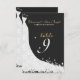 Vit elegant spets bröllopskjol över svart bakgrund bord nr 9 Guldaccent.