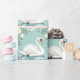 Elegant vit svan blomstergul blå presentpapper