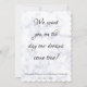 Beauty and elegance kommer tillsammans med dessa häpnadsväckande inbjudningar till bröllopsbröllop - fullkomligt inbjudningar till anpassadet där du kan anpassa namnen om bruden och brudgummen till att vara, datum, tid, plats, adress och inkludera om ett mottagningstillfälle ska följa. På motsatt sida av inbjudan står det: Vi vill att ni samma dag som våra drömmar är sanna, komen! följt av namn från det förlovade paret och datum för bröllop.