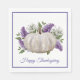 Thanksgiving: pappra blöjor med tunn lila gräns runt kant och vacker grafik av vit pumpa och lila blommor. Lila text läser Happy thanksgiving och kan vara personlig att läsa vad du vill.