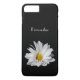Ett plusfodral för iPhone 6 med en fotografera av en elegant vitdaisy med en gult centrerar knappt där mot en ren svart bakgrund. Tillfoga ditt kända namn till denna sötblommadesign.