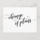 Med det här mångsidiga kortet kan du välja bakgrund färg (om du vill ha en ändring!) medan du har det här fantastiska teckensnittet. På fronten står det "ändrad planering" med hjälp av ett söt-skript med snurra och vinkara. I baksidan finns platshållare för mallar med information om matchande accent ord med calligraphy-teckensnitt. Använda den här mallen fält för att lägga till dina personuppgifter och ändra mitt förslag till formulering till kostym för dina behov och din situation. 99 //