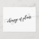 Med det här mångsidiga kortet kan du välja bakgrund färg (om du vill ha en ändring!) medan du har det här fantastiska teckensnittet. På fronten står det "ändrad planering" med hjälp av ett söt-skript med snurra och vinkara. I baksidan finns platshållare för mallar med information om matchande accent ord med calligraphy-teckensnitt. Använda den här mallen fält för att lägga till dina personuppgifter och ändra mitt förslag till formulering till kostym för dina behov och din situation. 99 //