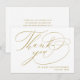 Skicka ett personligt tackkort med minimalistisk design till dina bröllopsgäster. Den här enkla designen har en elegant handskriven falsk guldskrift som lyder "Tack" tillsammans med ditt namn. Baksidan av kortet har ett personligt meddelande med din signatur. Designad av Susan Coffey.