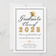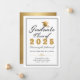 Meddela din examen med stil med detta eleganta anpassade meddelandekort. Denna typsnittsdesign har orden Graduate Class of 2025 med ditt namn, skola och datum för att anpassa i guld och vitt, accentuerat av en falsk guld-examenshatt och infattad i svart. Baksidan av kortet är vit. Designad av Susan Coffey.