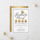 Meddela din examen med stil med detta eleganta anpassade meddelandekort med orden "Graduate Class of 2025" med ditt namn, skola och datum för att anpassa i guld och vitt accentuerat av en falsk guldstudentmössa på en vit bakgrund. Designad av Susan Coffey.
