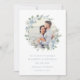 Elegant Watercolor Blommigt Bröllop spara datum. Elegant & Romantic, Dusty Blue-Blommigten sparar datumet med förlovningens foto som har en fantastisk, handmålad vattenfärg, dammblått, kräm ro och sage grönt löv som ordnats som en snyggt andedräkt med ett vackert mönster på baksidan som lätt kan tas bort om du så önskar. Hitta matchande objekt i Dusty Blue Wreaths Bröllop Suite.