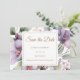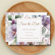 Vi presenterar vår minimalistiska och trendig bröllop spara datum, med en söt blomma i lätt lila och grönt löv och mer, med en elegant bakgrund, som skapar en ren och snyggt eftertanke för din speciella dag.