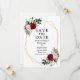 Modern Elegant Watercolor Burgundy Blommigt Förlovning Bröllop Annoncement Save Datakortet omfattar peonier, lilies, eukalyptus löv och annan vacker grej på ett guld-geometriskt ram.